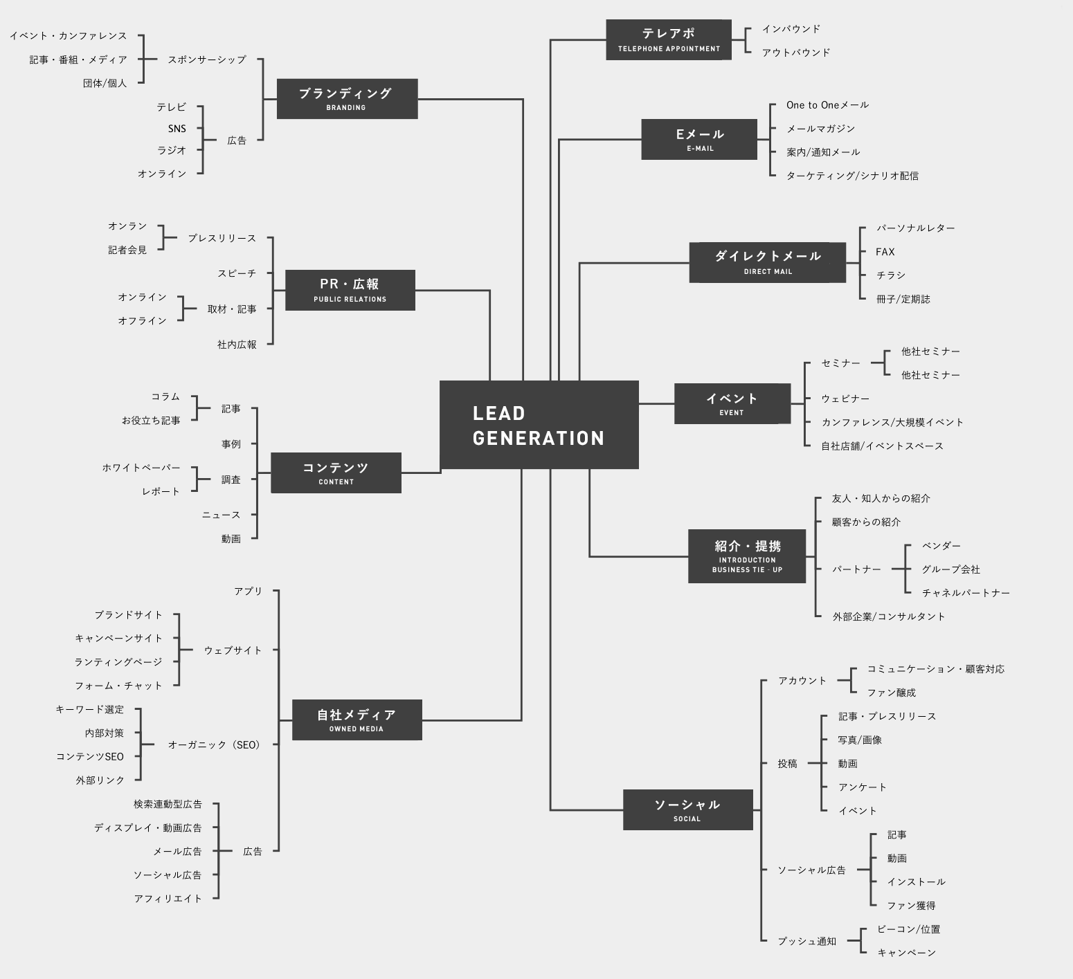 リード獲得にはあらゆる手法があります。PR、広告、自然検索、イベント、SNSなど…